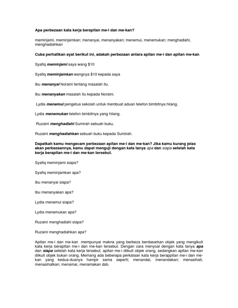 Apa Perbezaan Kata Kerja Berapitan Me