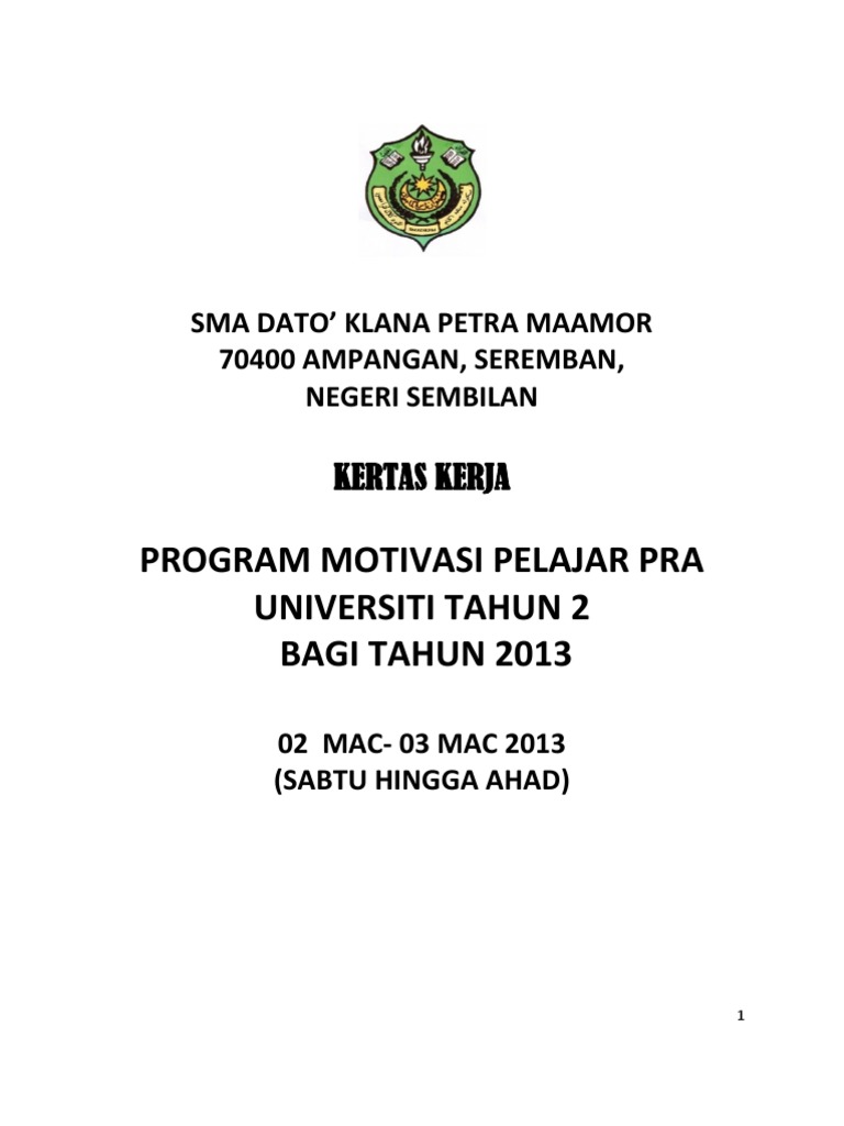 Doc Kertas Kerja Program Suntikan Motivasi Tingkatan 2 Hingga 5 Sekolah Menengah Kebangsaan Panji 2006 Aizuddin Dien Academia Edu