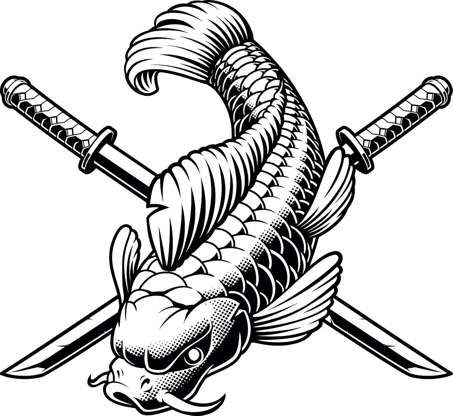 Amazon Com Simple Black And White Japanese Element Cartoon Emoji Vinyl Sticker 8 Tall Koi Fish Katana Swords Automotive