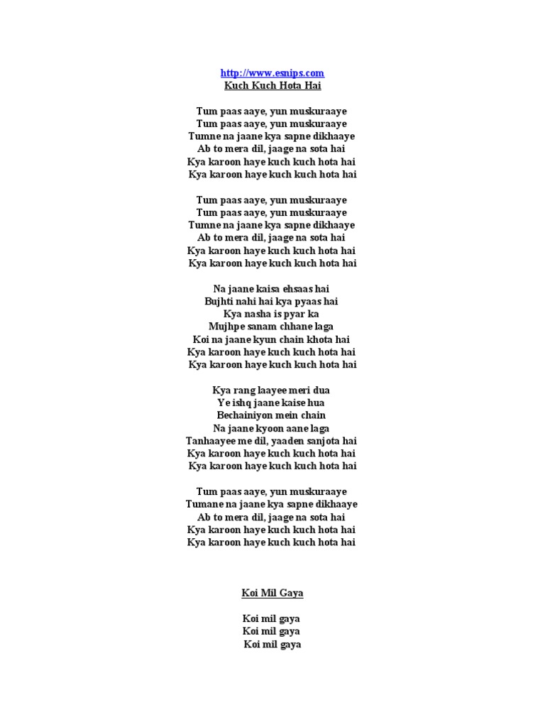 Koi Mil Gaya Song Lyrics In English Kuch Kuch Hota Hai