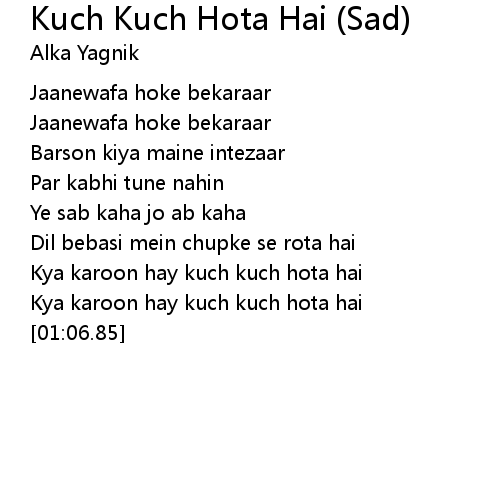 Kuch Kuch Hota Hai Sad Lyrics Alka Yagnik Kuch Kuch Hota Hai 1998