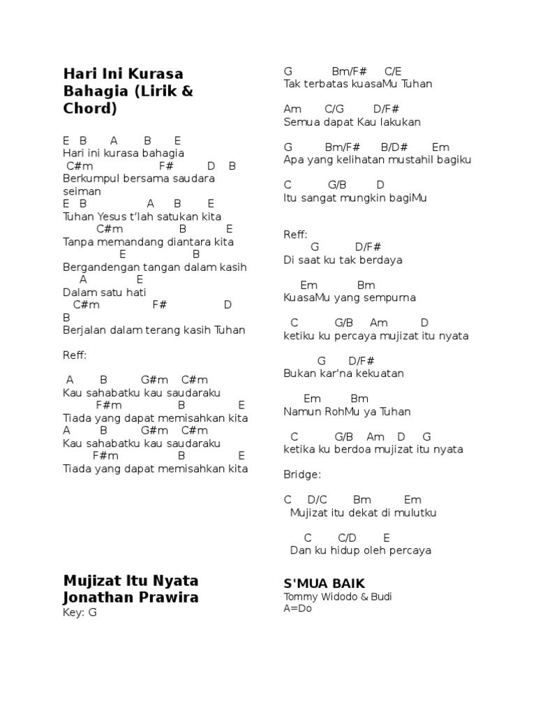 Hari Ini Kurasa Bahagia Chords Lyrics Psalmnote