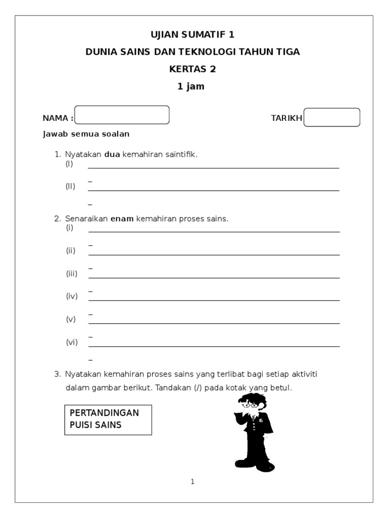 Latih Tubi Soalan Latihan Sains Tahun 1 Cuti Bulan Mac 1 Docx