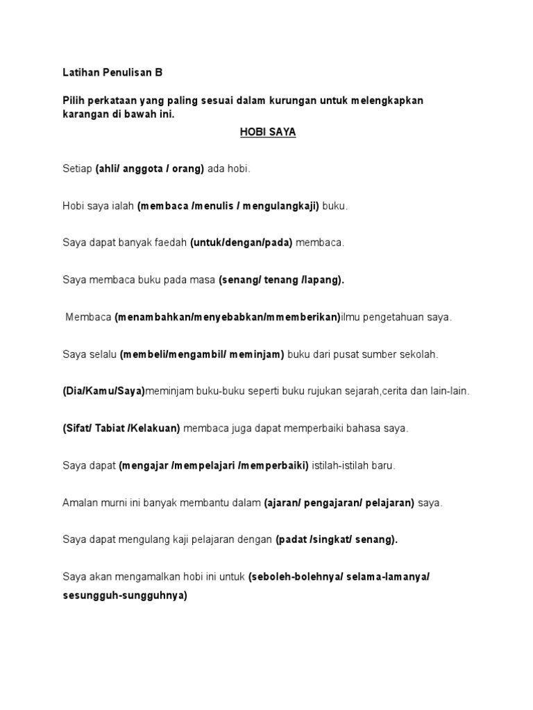 Latihan Penulisan B Hobi Saya Dan Bina Ayat