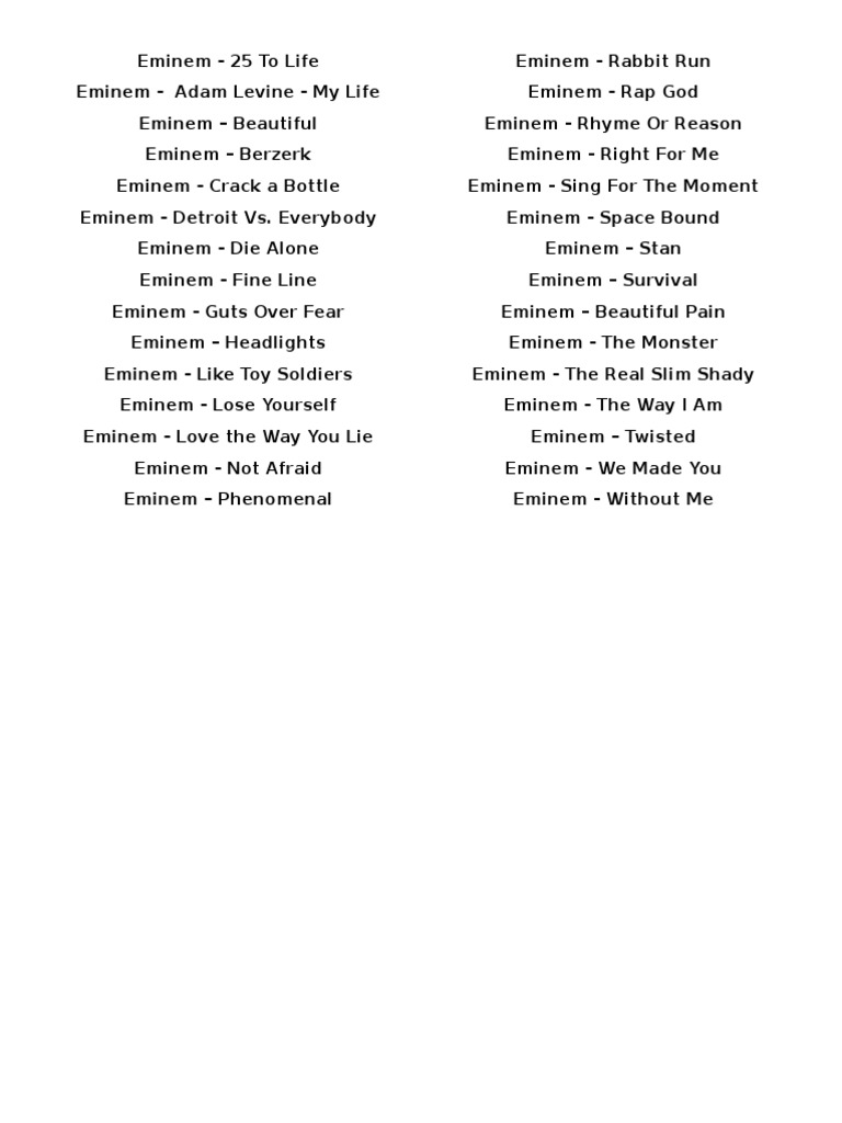Lirik Lagu Eminem Ft Songs Pop Music