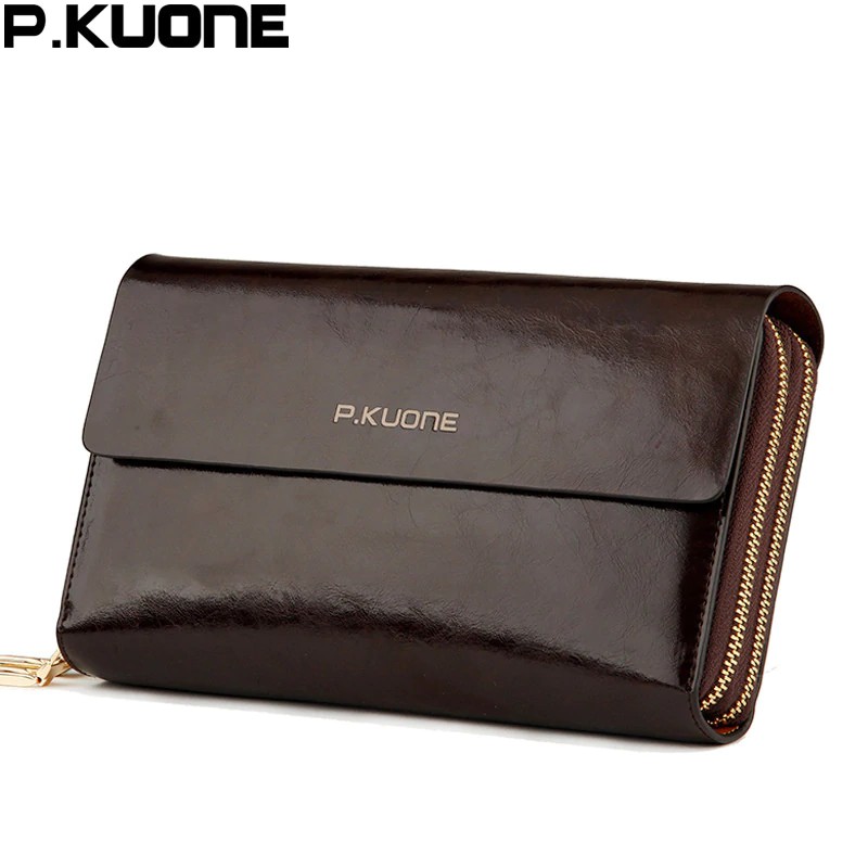 P Kuone Men S Clutch Wallet Luxury Shining Oil Wax Cowhide Men Clutch Bag Man Long Genuine Leather Wallets Male Coin Purse Bags Oibag