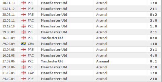 This is one of most anticipated fixtures of this season especially in the domestic setting. Manchester united football club. Out of 29 previous meetings arsenal have won 7 matches while manchester united won 14. Man utd vs arsenal head to head record this page lists the head to head record of arsenal vs man utd including biggest victories and defeats between the two sides and h2h stats in all competitions.